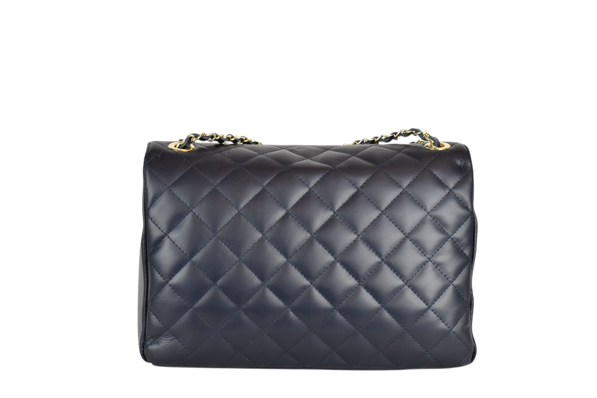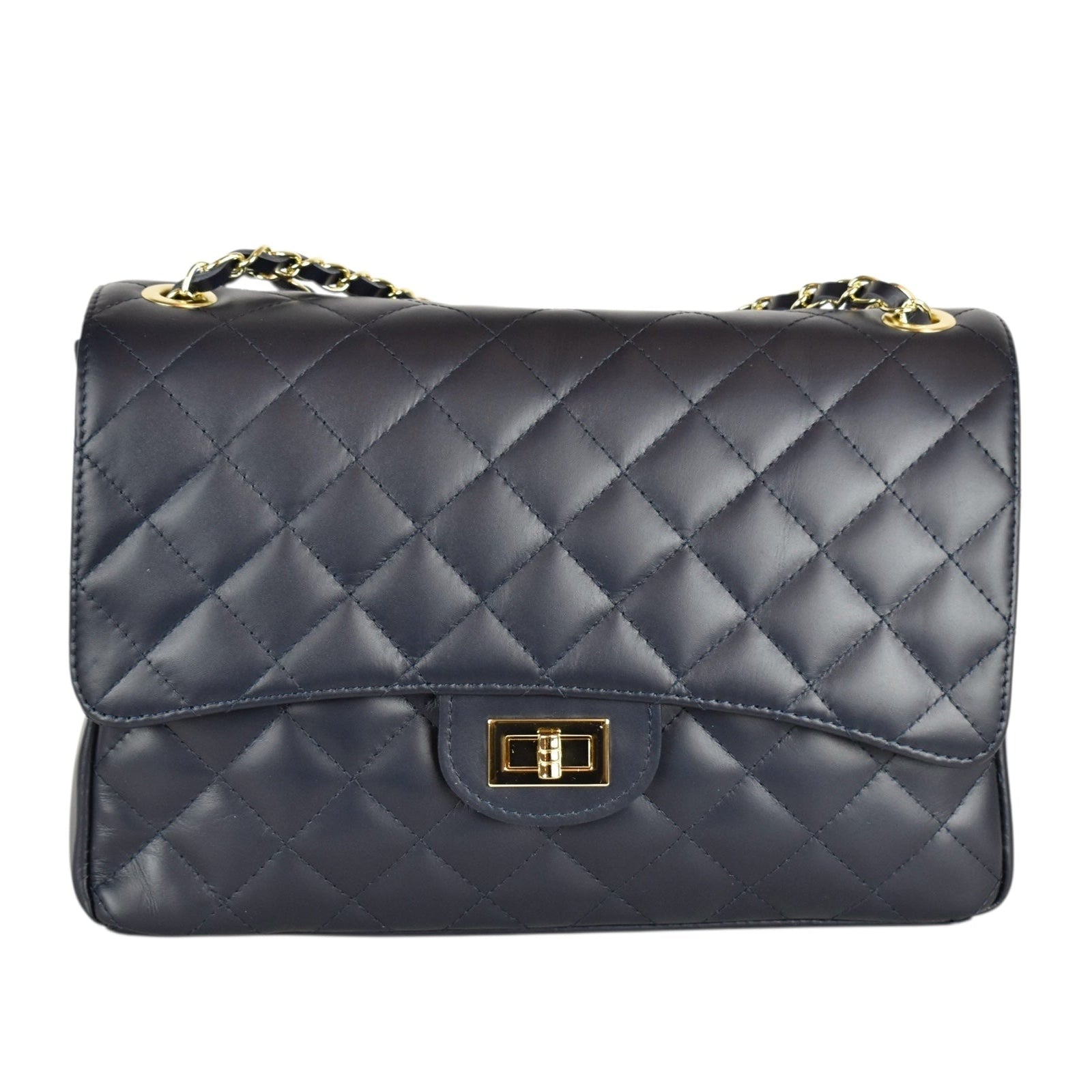 Timeless and refined, the Danielle Satchel is crafted from luxurious navy Italian leather with a classic diamond-quilted finish. The elegant gold-tone turn-lock closure and chain-accented strap lend it a polished edge that transitions effortlessly from daytime sophistication to evening chic.